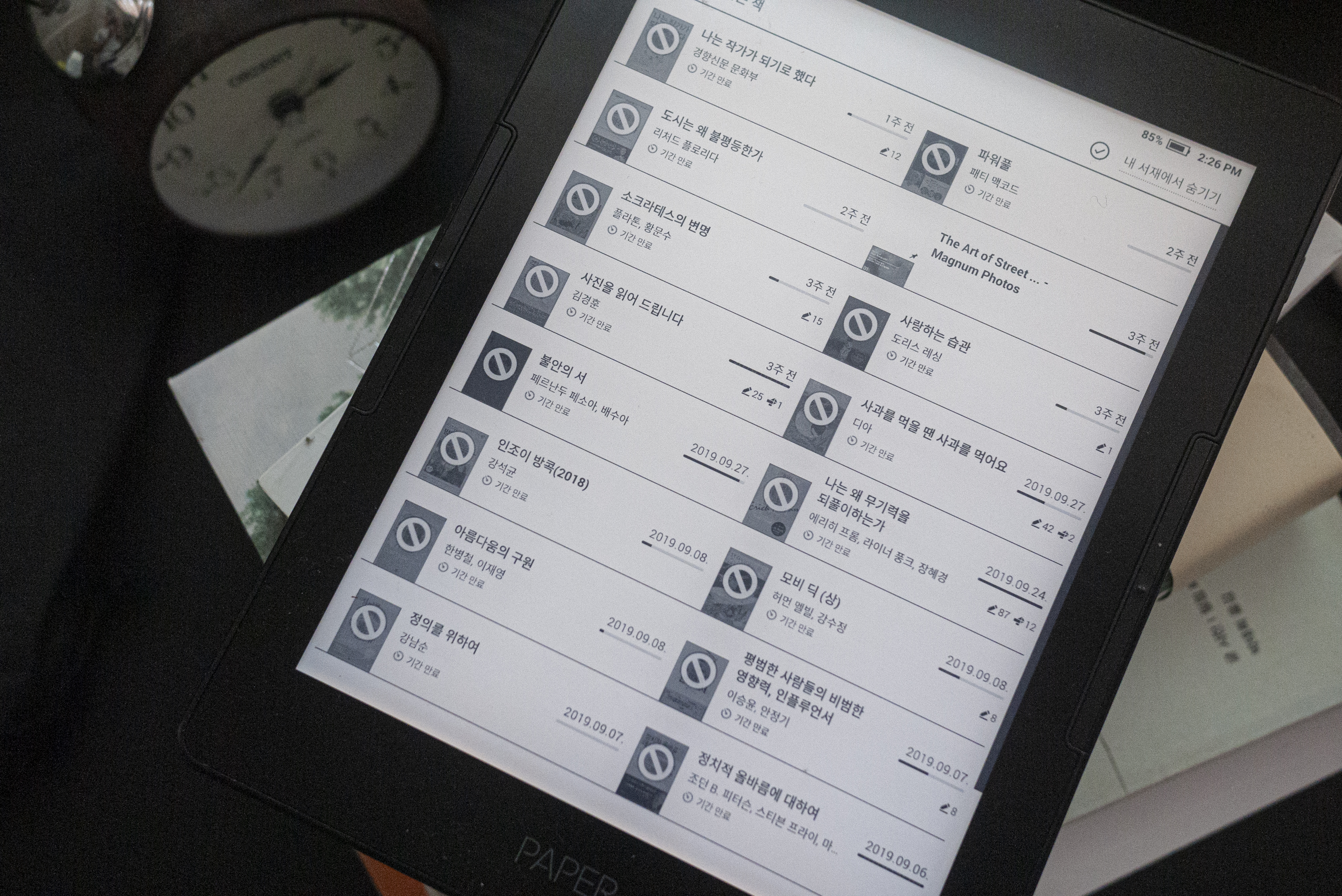 얼마 전 페이퍼 프로를 구매하고, 무제한 독서 앱인 <리디셀렉트>를 이용해 왔다. 아니, 표현을 바로 잡아야 겠다. 무제한 독서 앱이 아니라, 선별된 책들을 볼 수 있는 독서 서비스 앱을 이용해 왔다. 그렇게 내가 이용했던 <리디셀렉트>의 구독료는 월 6,500원. 가격만 놓고 보자면 전자책 한 권을 구매하는 값과 비슷하다. (*2019년 12월부터는 9,900원으로 오른다.)