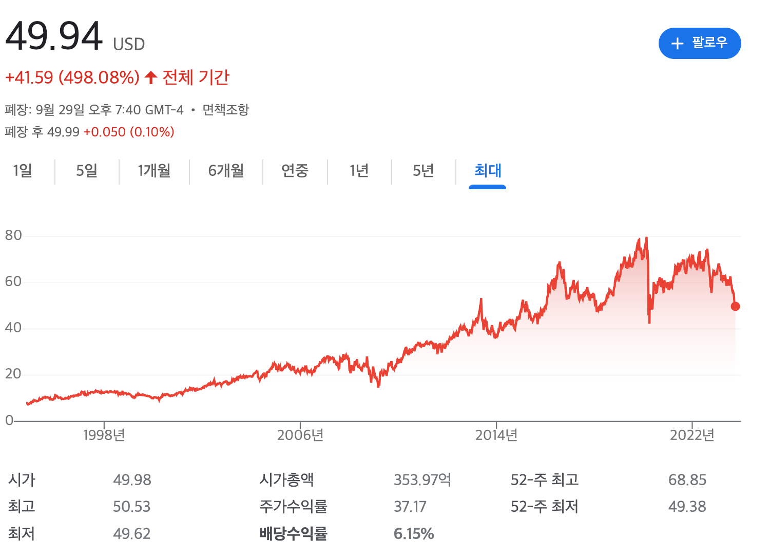 리얼티 인컴은 미국의 상업용 부동산과 사무실, 주택 등에 투자하는 회사로 안정적인 배당을 주는 리츠주로 알려져있다. 최근 주가가 하락했지만, 매력적인 배당 수익률과 꾸준한 배당 성장 혜택을 제공한다.