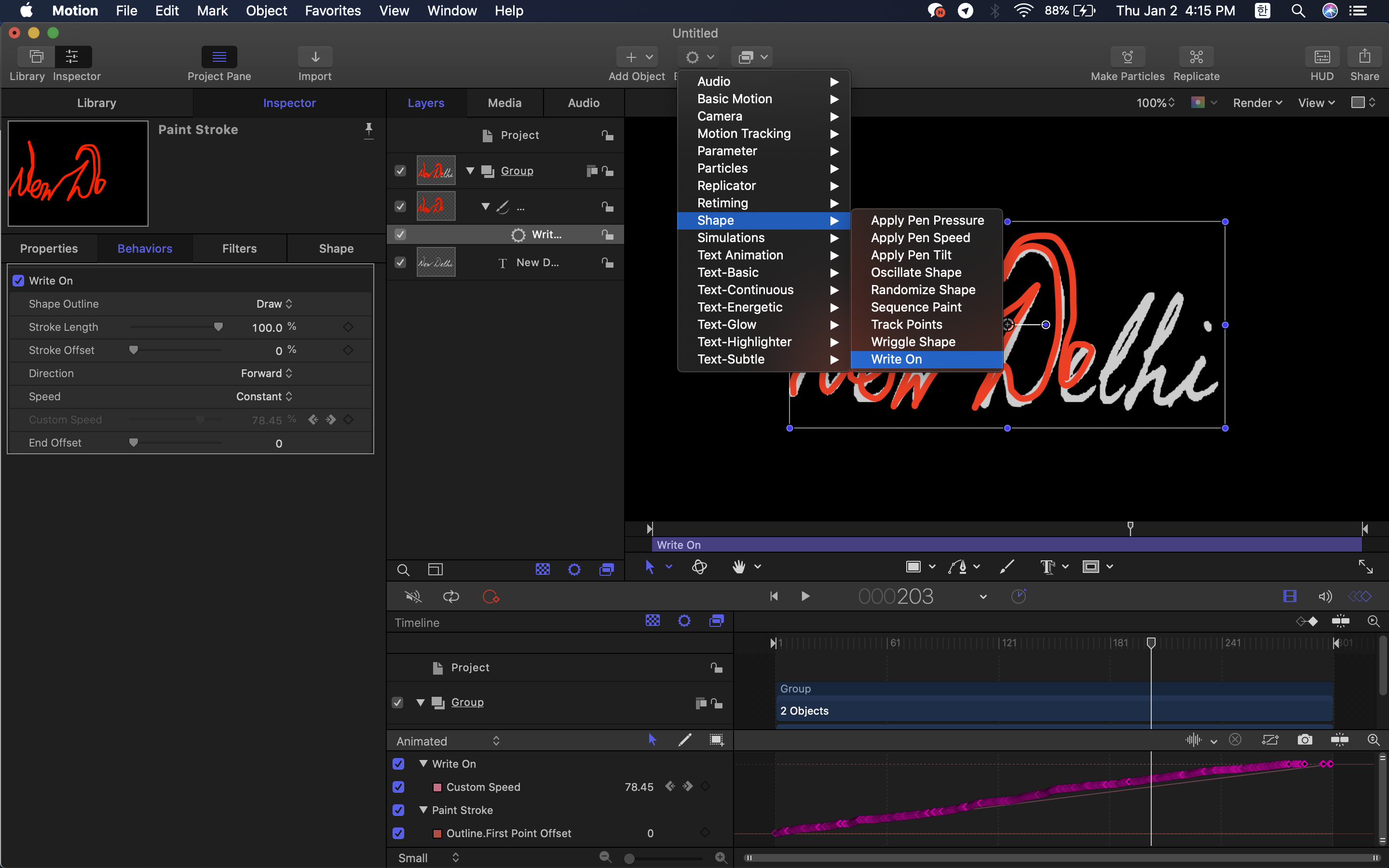 4. 다음으로 페인트 스트로크에 Shape - Write On 효과를 적용시킵니다.