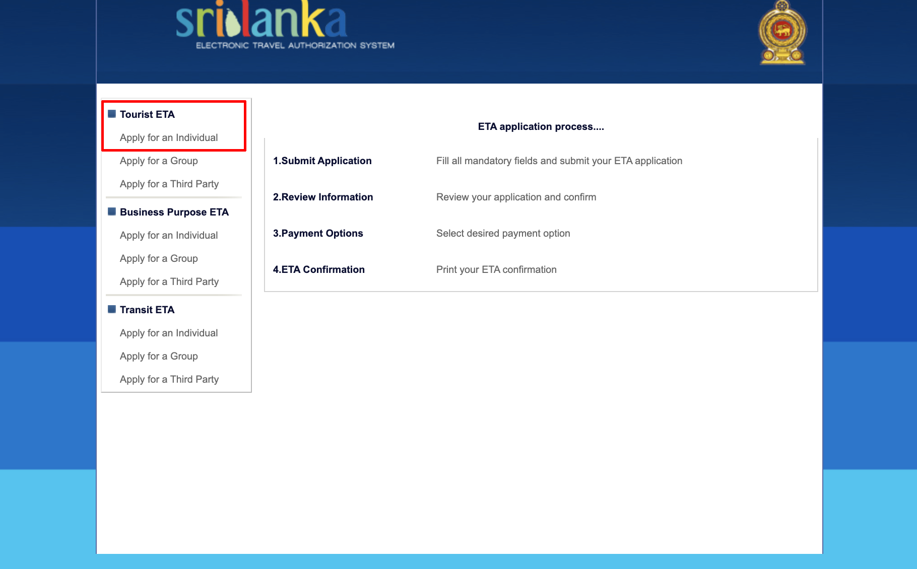 인터넷을 통해 스리랑카 비자를 신청하기 위해서는 아래 웹사이트에 접속하면 됩니다.