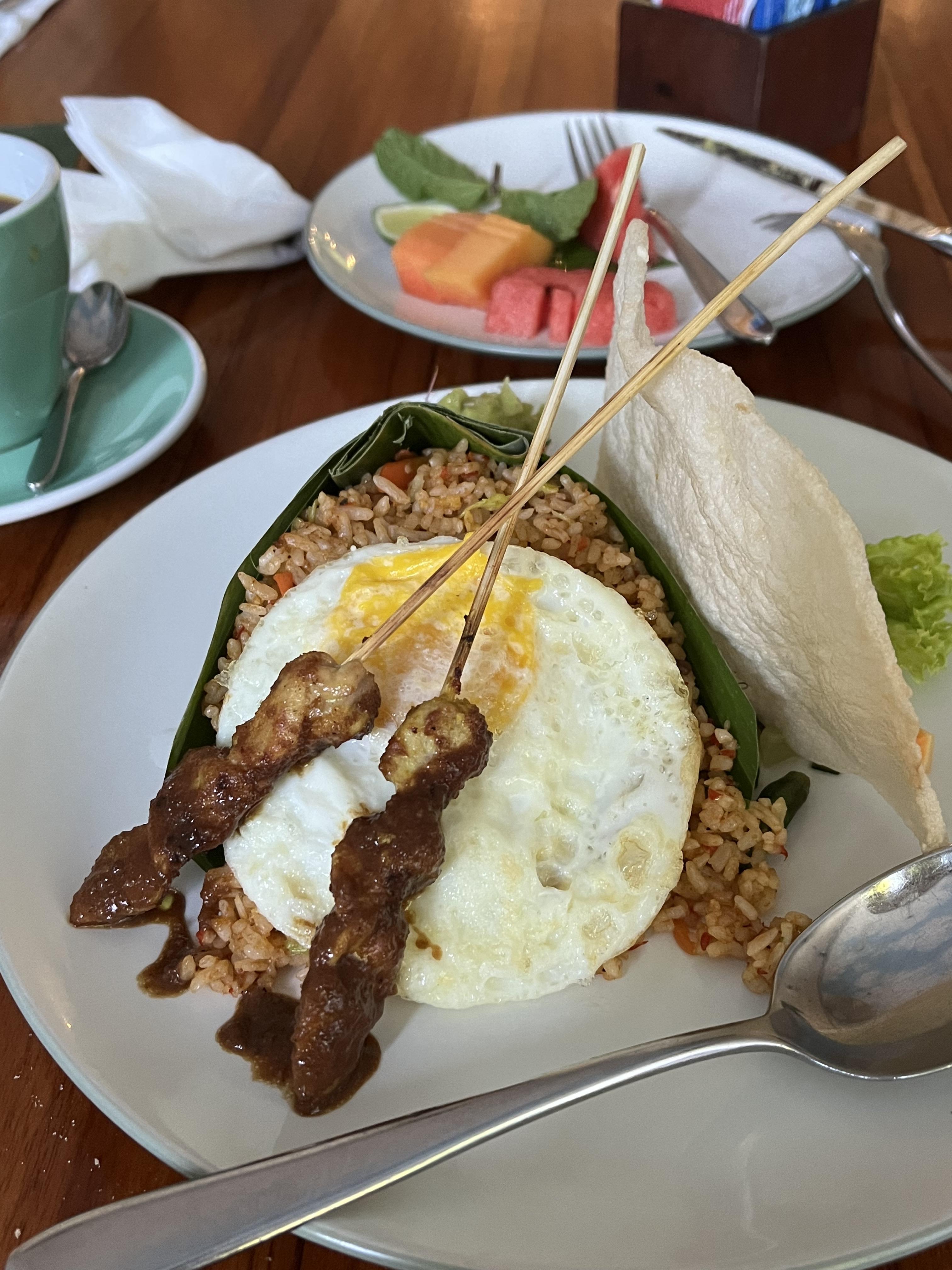숙소를 예약할 당시 조식을 따로 신청할 수 있었던 거 같은데 나는 신청하지 않았다. 그런데 생각보다 발리는 크고 넓고 더워서 숙소를 나와 아침을 먹으러 가기가 쉽지 않았다. 그래서 1층에 있는 식당에서 조식을 주문해서 먹었는데, 꽤나 맛있었다. 에그 베네딕트 추천! 가격은 모두 포함해서 105,000 루피아 정도했던 걸로 기억한다.