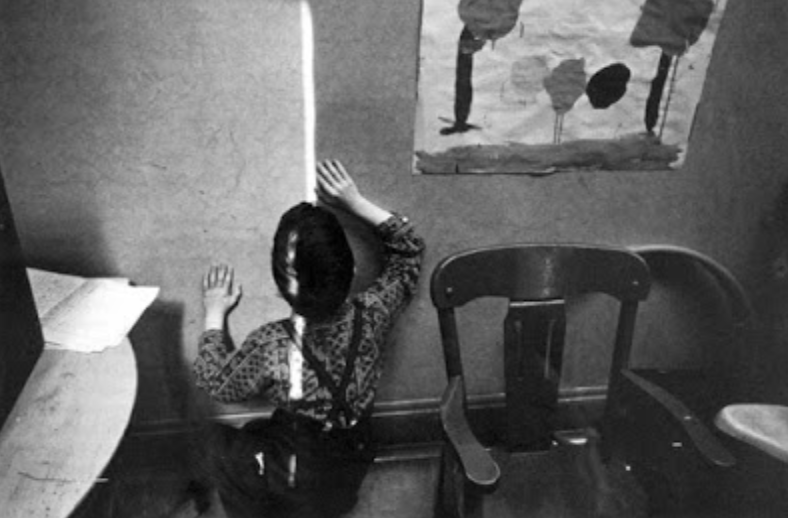 찰스 하버트의 사진 <맹인>. 하버트는 맹인들을 돕는 뉴욕의 라이트하우스에서 어린이들을 촬영했다. 하버트는 한 소년이 매일 오후가 되면 건물의 좁은 틈에서 비치는 햇빛을 찾아와 그 온기를 느끼는 모습을 담았다.