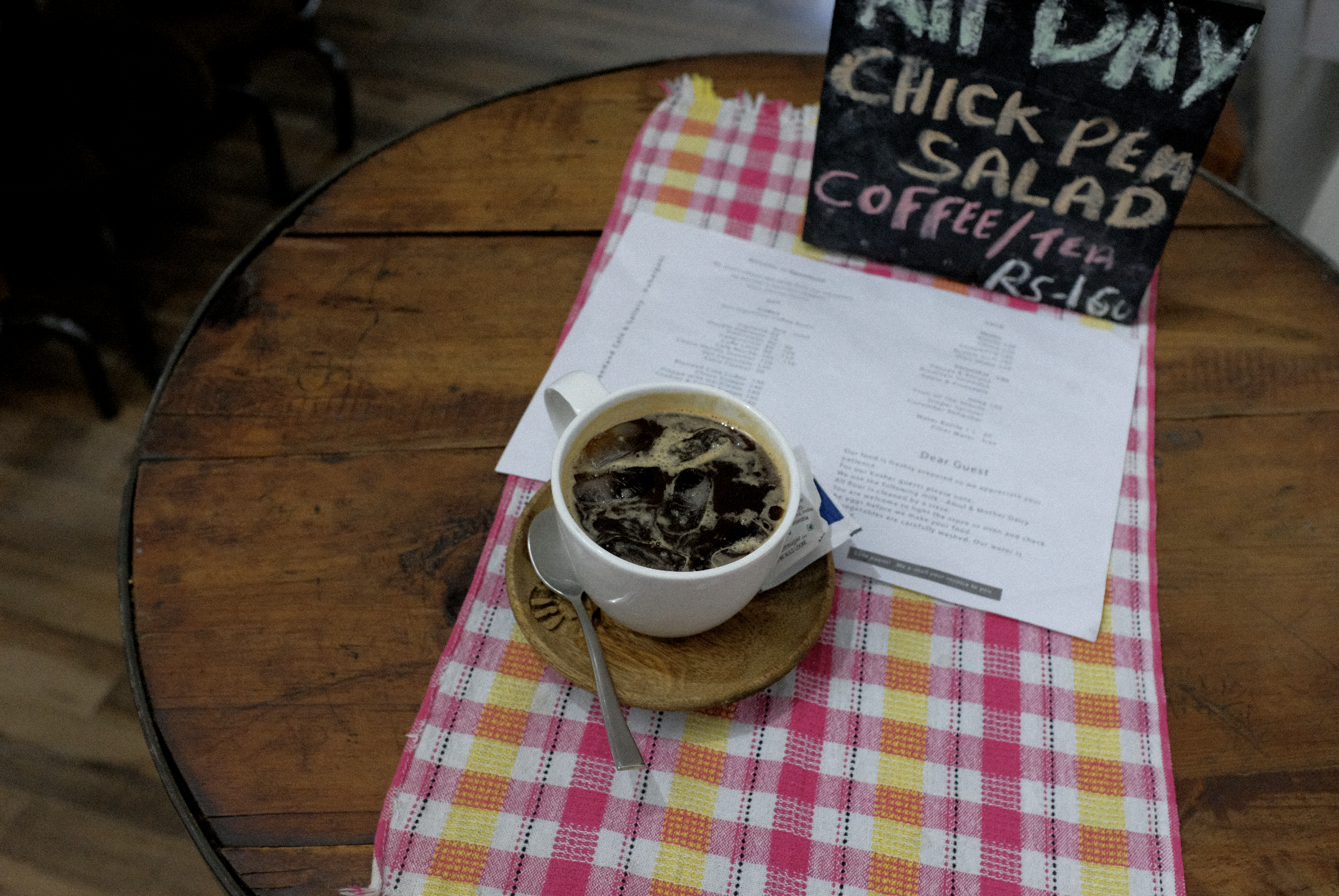 저는 더블샷 아메리카노를 하나 시켰습니다. 가격은 80루피. 커피 맛이 특출나지는 않지만, 혼잡한 빠하르간지에서 조금의 여유를 찾기 좋은 카페입니다.