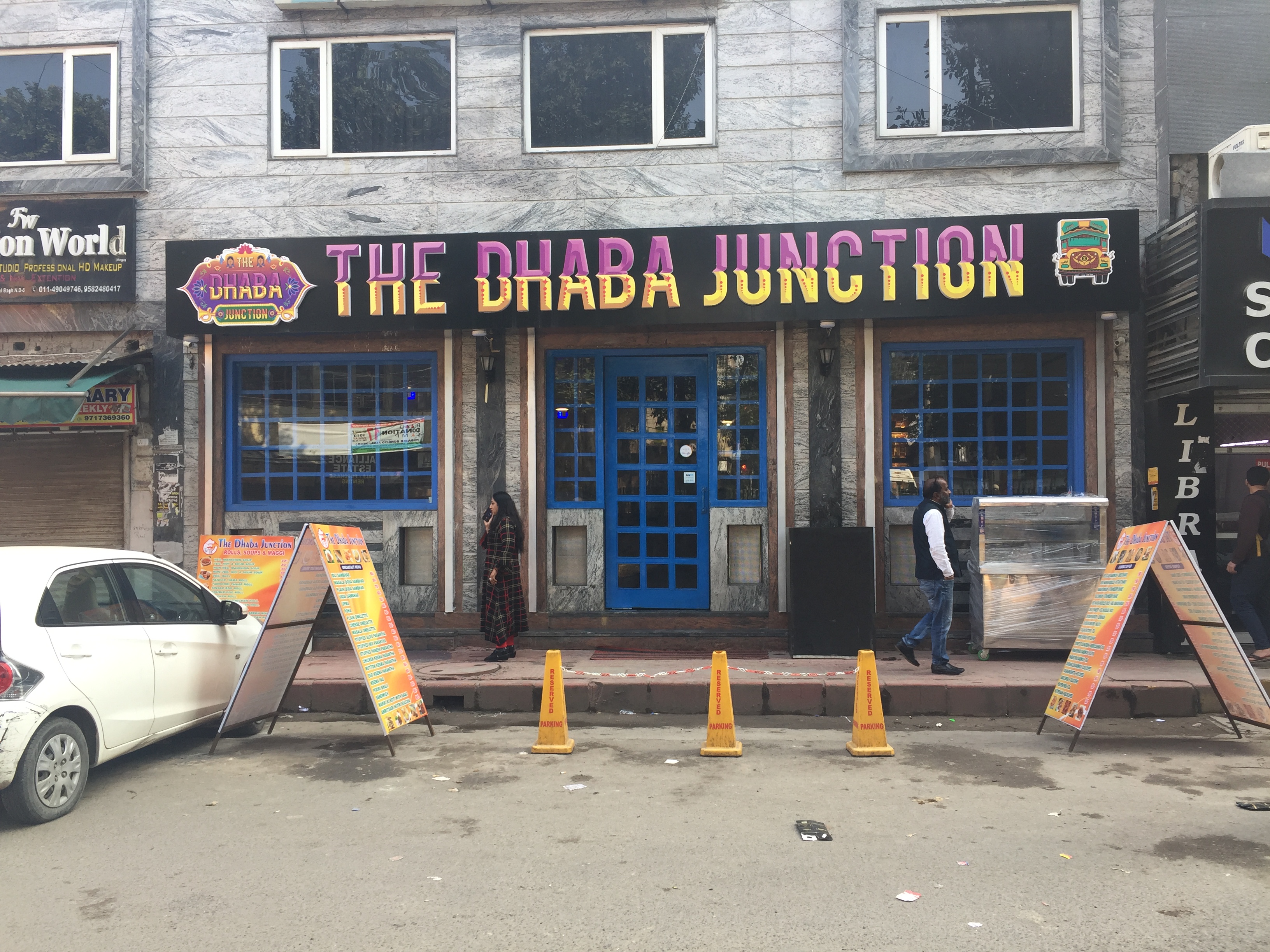 오늘은 뉴델리 관광지에서는 조금 떨어진 식당 에 방문했습니다. 전자상가와 귀금속, 의류들을 파는 시장 Karol Bagh 근처에 있는 식당인데요. 버터 치킨과 갈릭 난을 맛있게 먹었습니다.