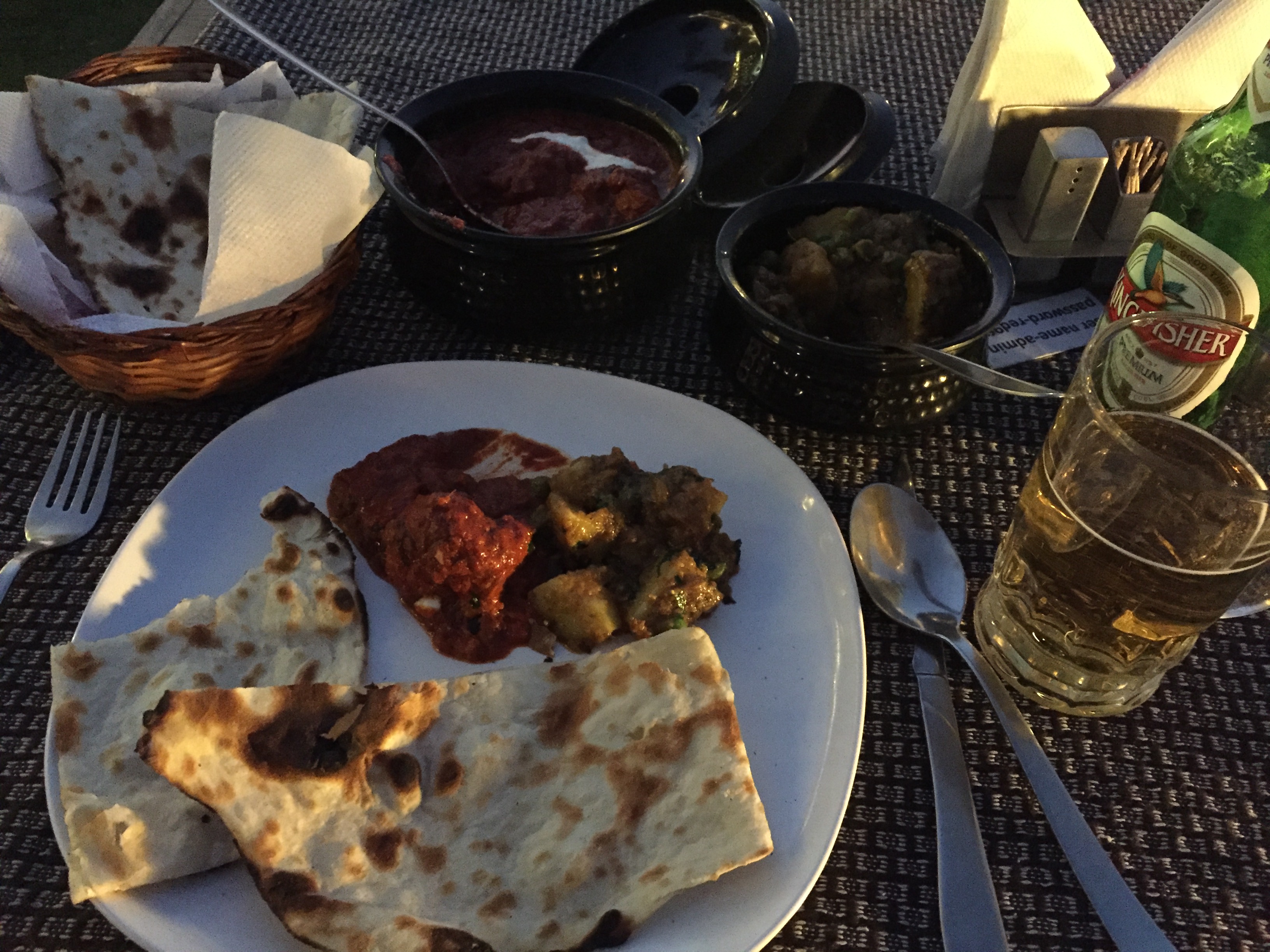 인도 식당에서 마시는 첫 맥주네요. 인도에서는 킹피셔죠^^대기 질이 너무 안 좋아서 목이 너무 칼칼했는데 맥주를 한 잔 마시니 참 시원했습니다.