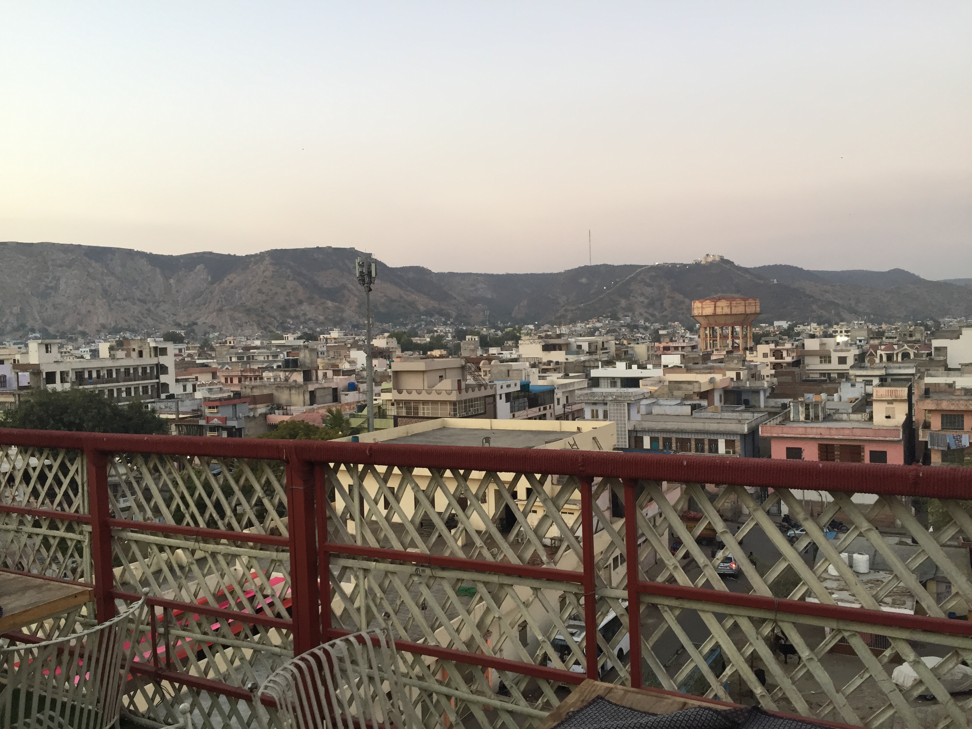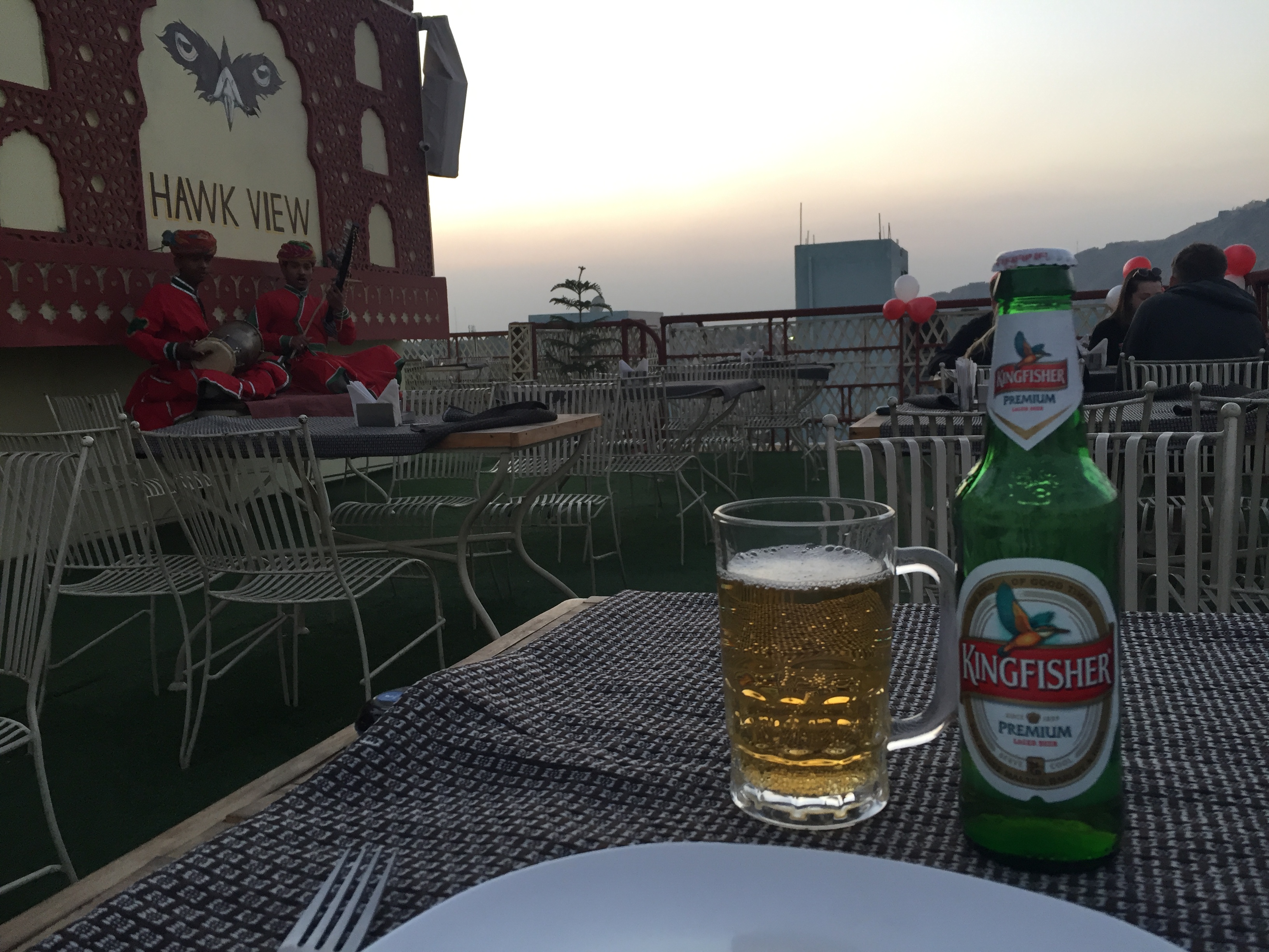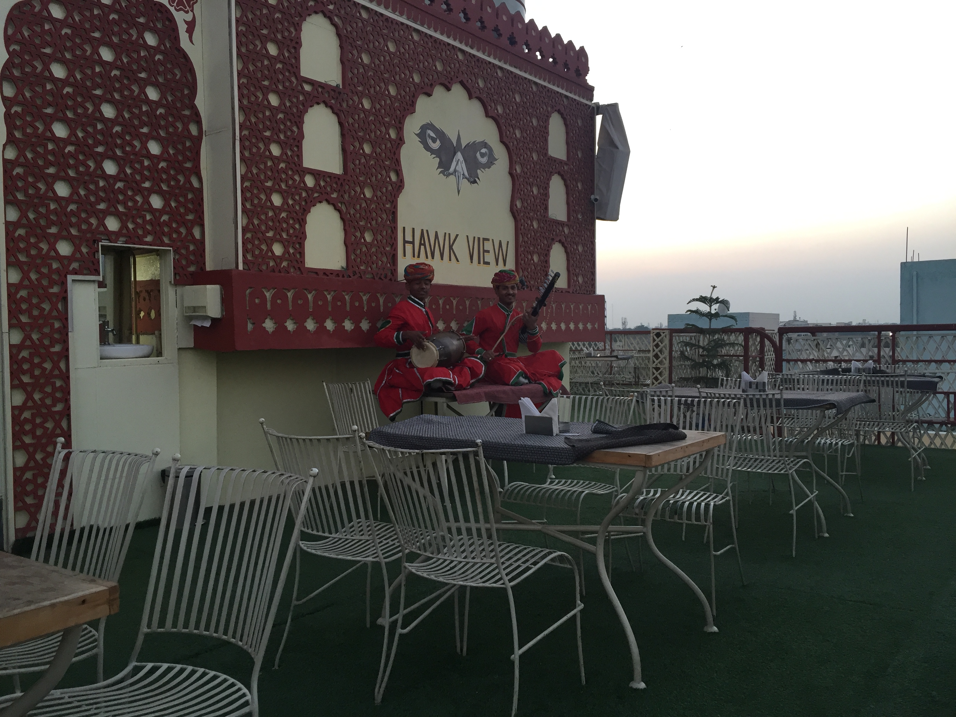 루프 탑 한쪽에는 이렇게 인도 악기를 연주하는 친구들이 있습니다. 반대편에서는 자이푸르 시내를 내다볼 수 있습니다.