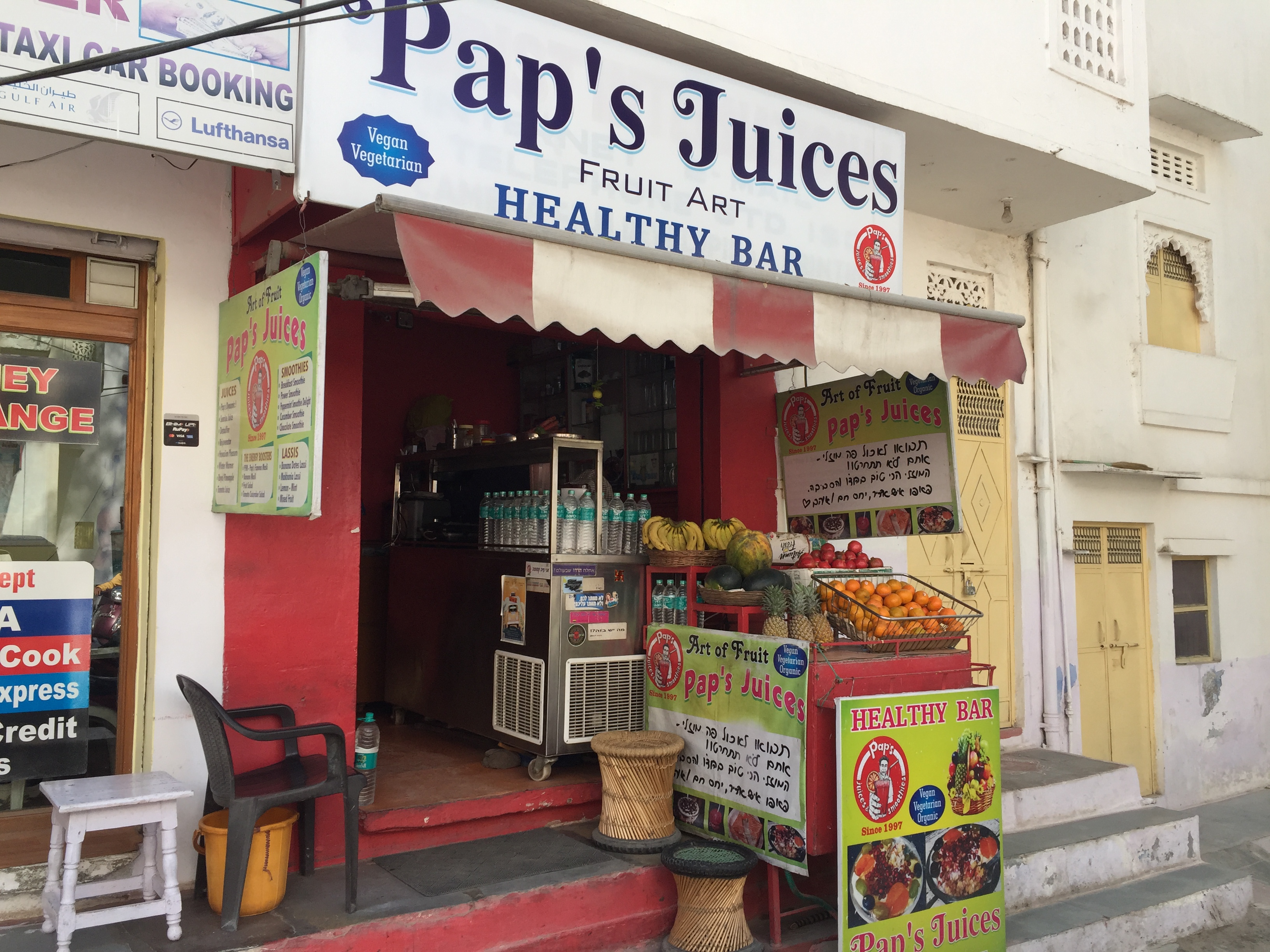 인도 하면 빠질 수 없는 음료가 바로 라씨죠. 라씨는 요거트와 비슷한데 여기에 과일과 향신료 등을 추가해 마시는 전통 음료입니다. 우다이푸르에서 와서 라씨 집을 찾던 중 Pap's Juices에 들렀습니다.