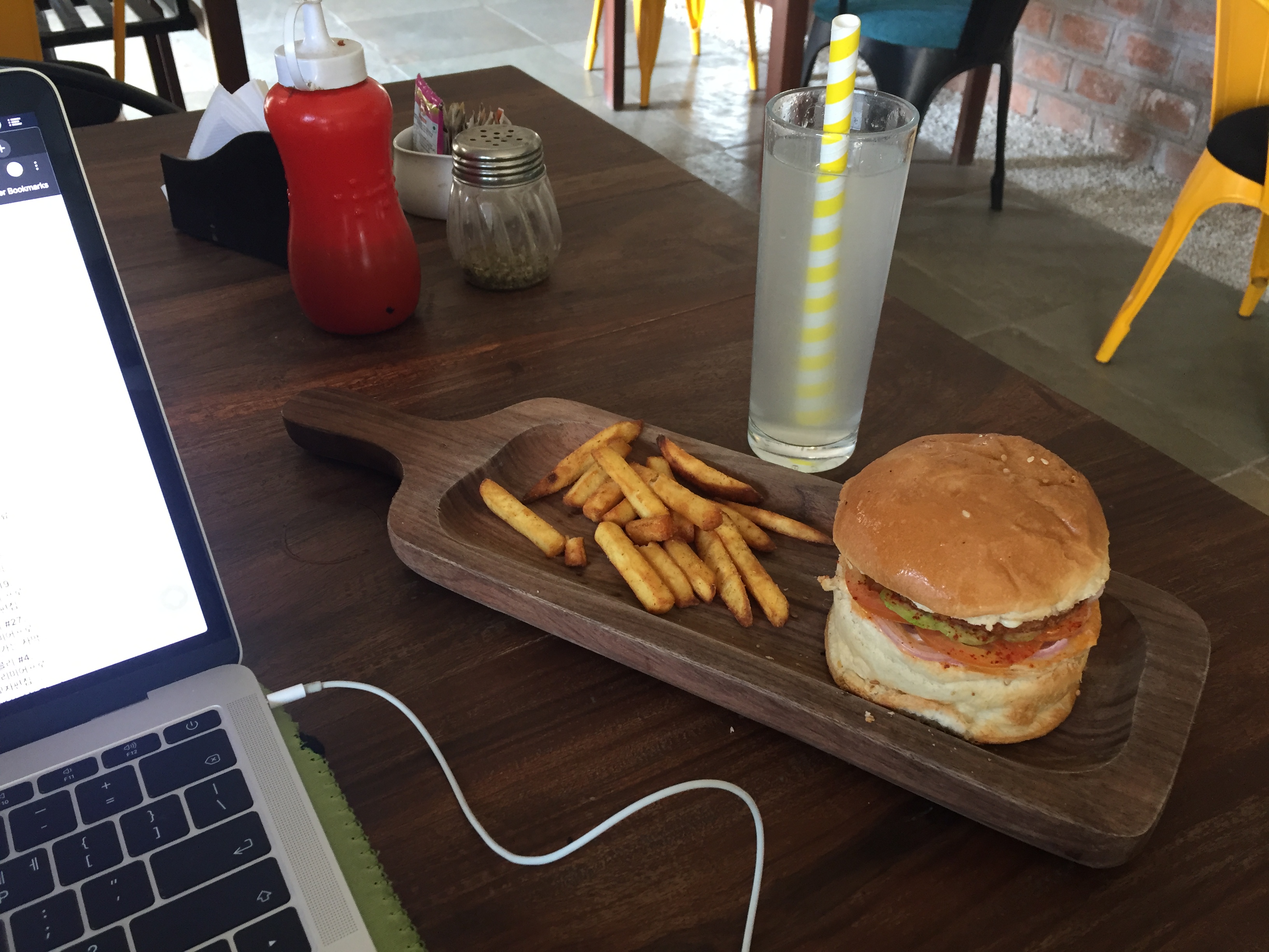 한창 작업을 하다보니 어느덧 점심 시간을 훌쩍 넘겼더라고요. 출출한 배를 달래기 위해 점심으로 베지버거와 소다를 시켜 먹었습니다. 우다이푸르에서 코워킹 스페이스를 찾으신다면 들러볼만한 곳입니다.