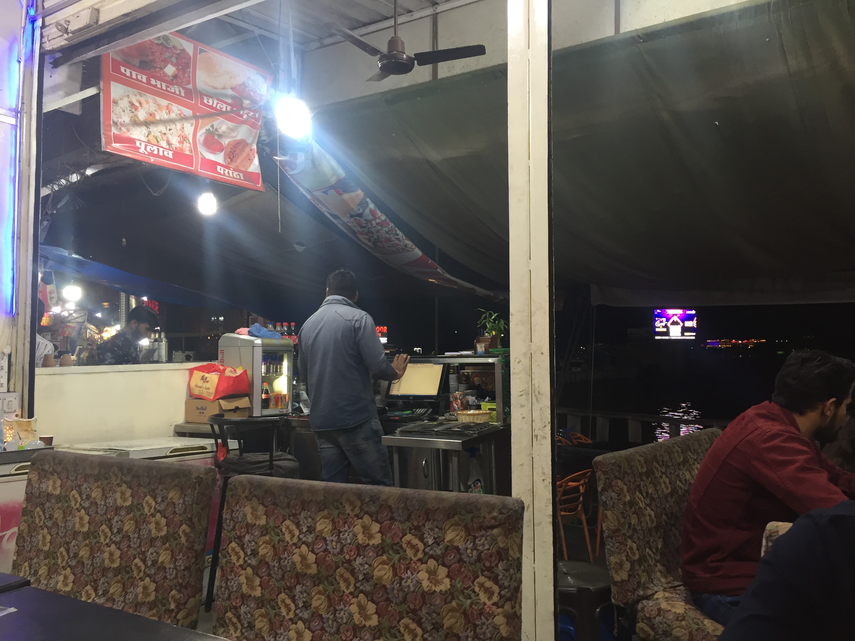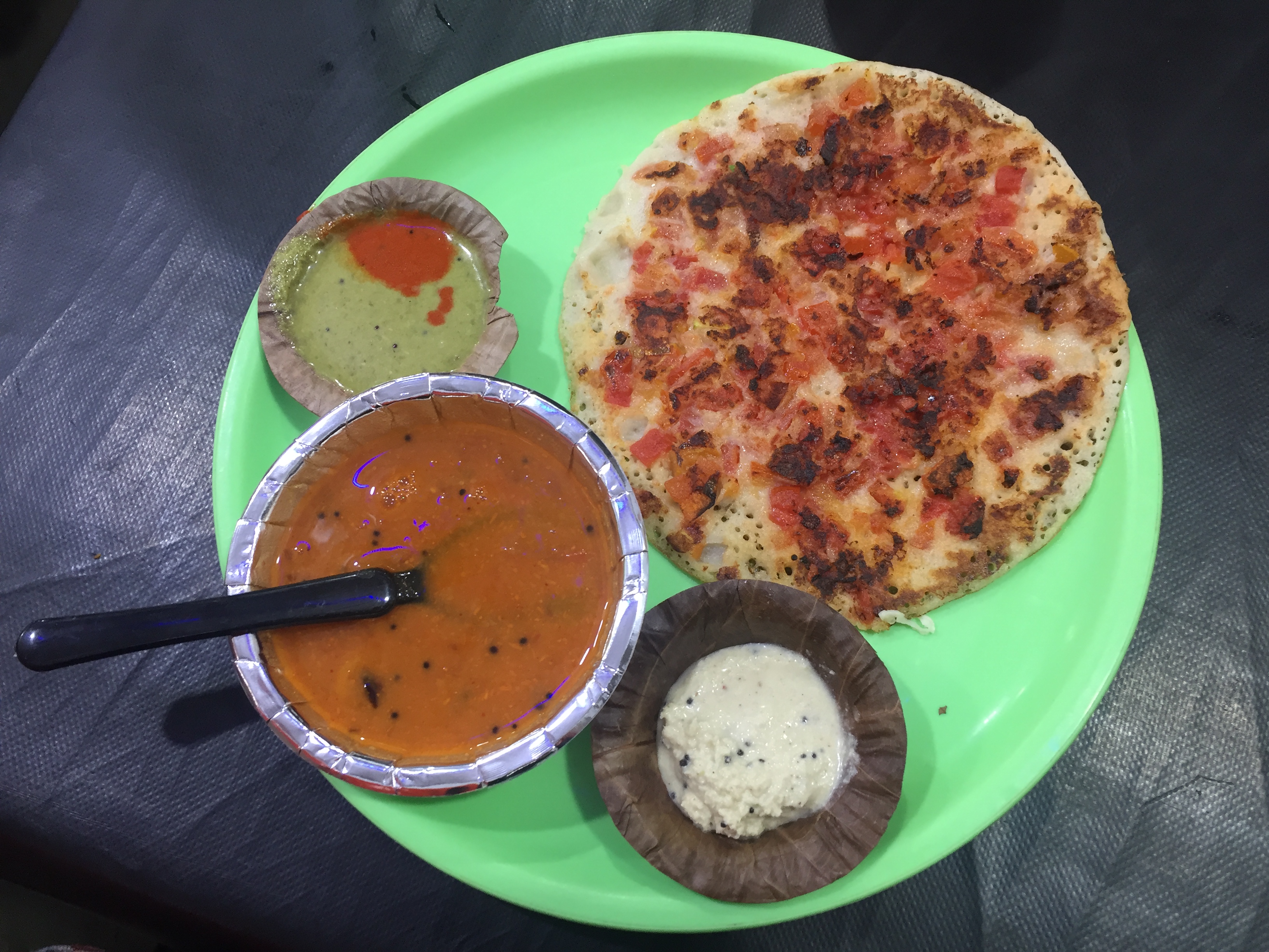 우다이푸르 호수 근처에 위치한 패스트푸드 가게에 들렀습니다. 우다이푸르는 북인도지만, 신기하게도 이곳에서는 남인도 음식들을 팔고 있었습니다. 무얼 먹어볼까 하다가 우타팜(Uttapam)이라는 음식을 먹어 보기로 했습니다. 우타팜은 남인도에서 먹는 도사(dosa)의 일종인데, 도사가 보통 바삭바삭한 반면 우타팜은 두껍고, 아래처럼 토핑이 들어가 있는 음식이었습니다.