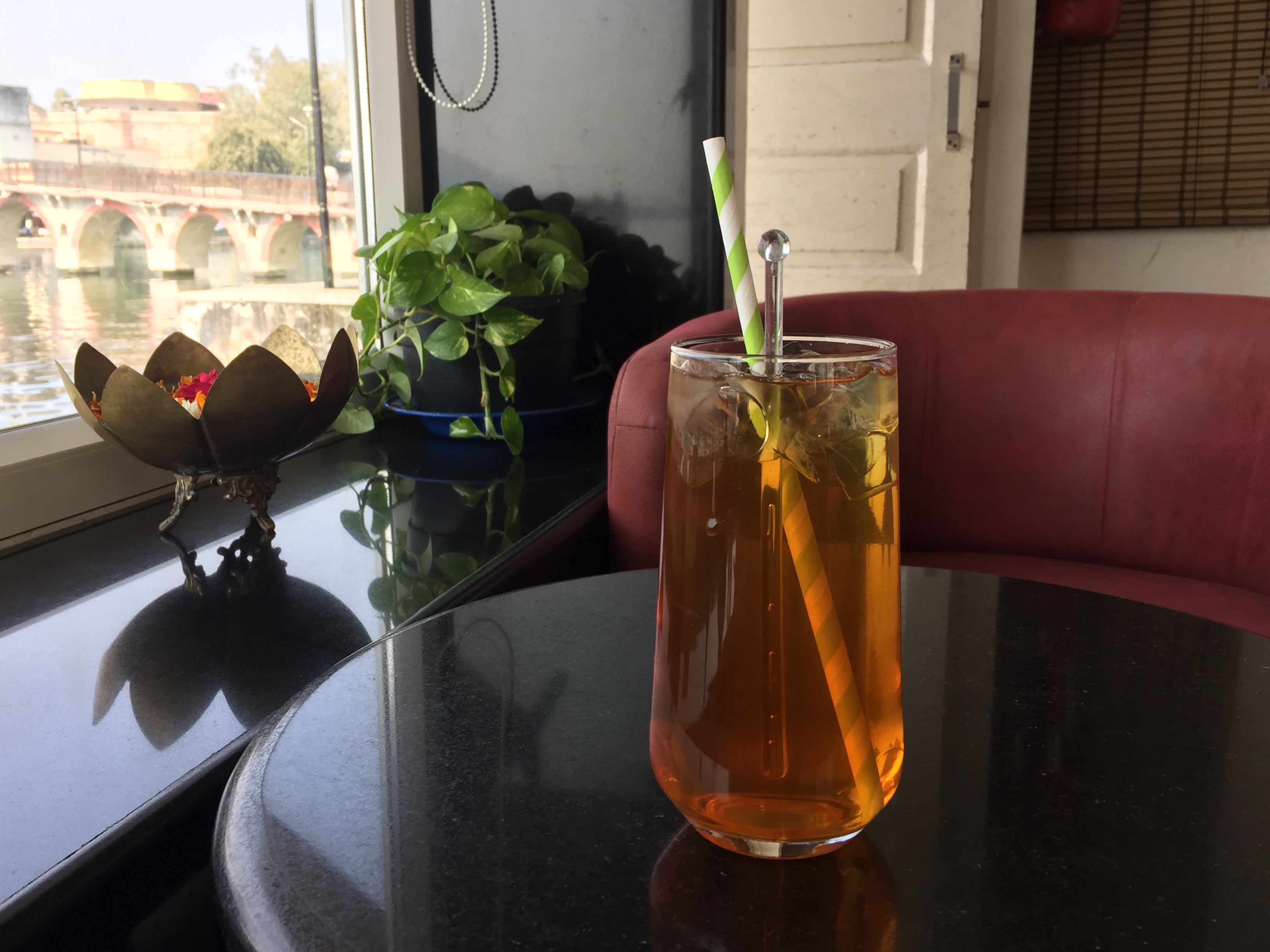 우다이푸르에서 이제 뭄바이로 버스를 타고 떠나는데요. 세 시간이 넘게 시간이 남아 카페에 들렀습니다. 밖으로 피촐라 호수가 보이는 이름하여 커피보다 뷰 값이 더 비싼 곳이었는데요. 복숭아 티(150루피=2500원)를 하나 시키고, 바깥을 구경하며 시간을 보냈습니다. 실내는 조금 비좁은 편이었지만, 호수와 바로 맞닿은 테라스가 있어서 분위기가 꽤 좋았습니다.