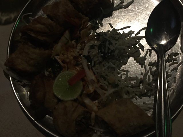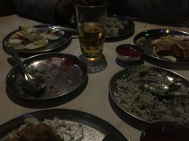 아우랑가바드에서 보내는 마지막 밤. 이제 프라카시와도 마지막이고 해서 함께 맥주를 한 잔 마시기로 했다. 정처없이 걷다가 사람들로 북적여 방문했던 곳. 다행히 이번에는 프라카시가 볶음밥을 시켰고, 나는 스프링롤을 시켜 먹었다. 둘이서 먹고 650루피(1만 1천원)정도가 나왔다.