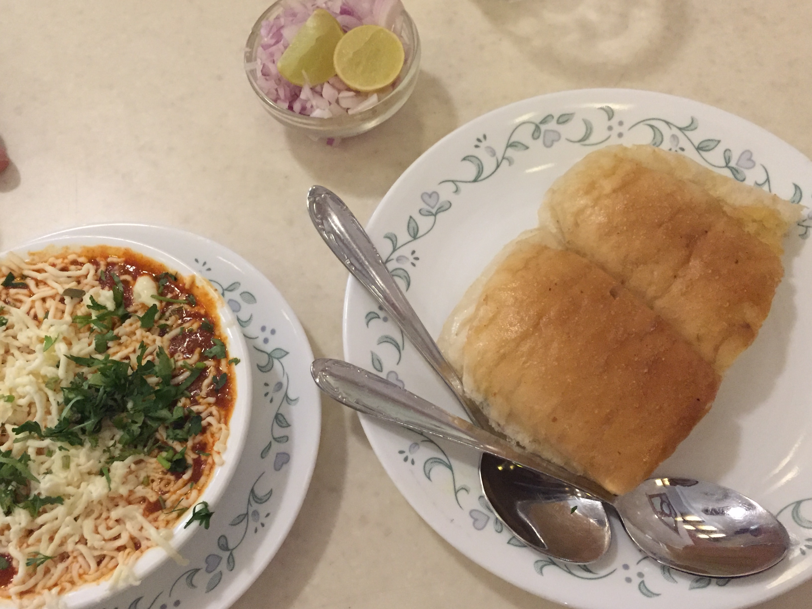 프랑스에서 온 여행자와 함께 먹었던 음식이다. 그는 인도 음식을 좋아한다 했는데, 파브 바지는 그가 가장 좋아하는 음식이었다. 원래는 뭄바이에서 노동자들이 빠르게 먹을 수 있는 음식으로 고안된 패스트 푸드의 일종이라 한다. 버터가 발라진 빵과 함께, 치즈가 듬뿍 들어간 파브 바지. 그리고 생양파와 레몬.