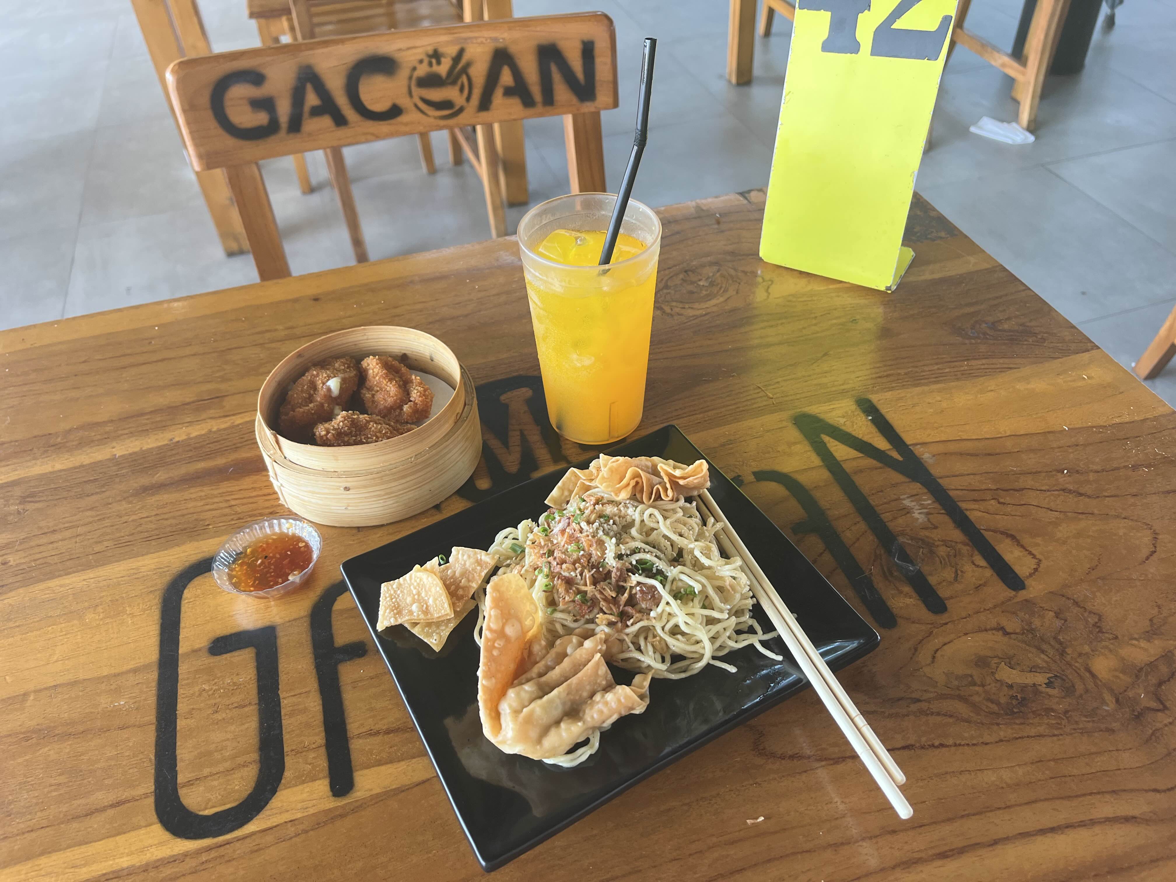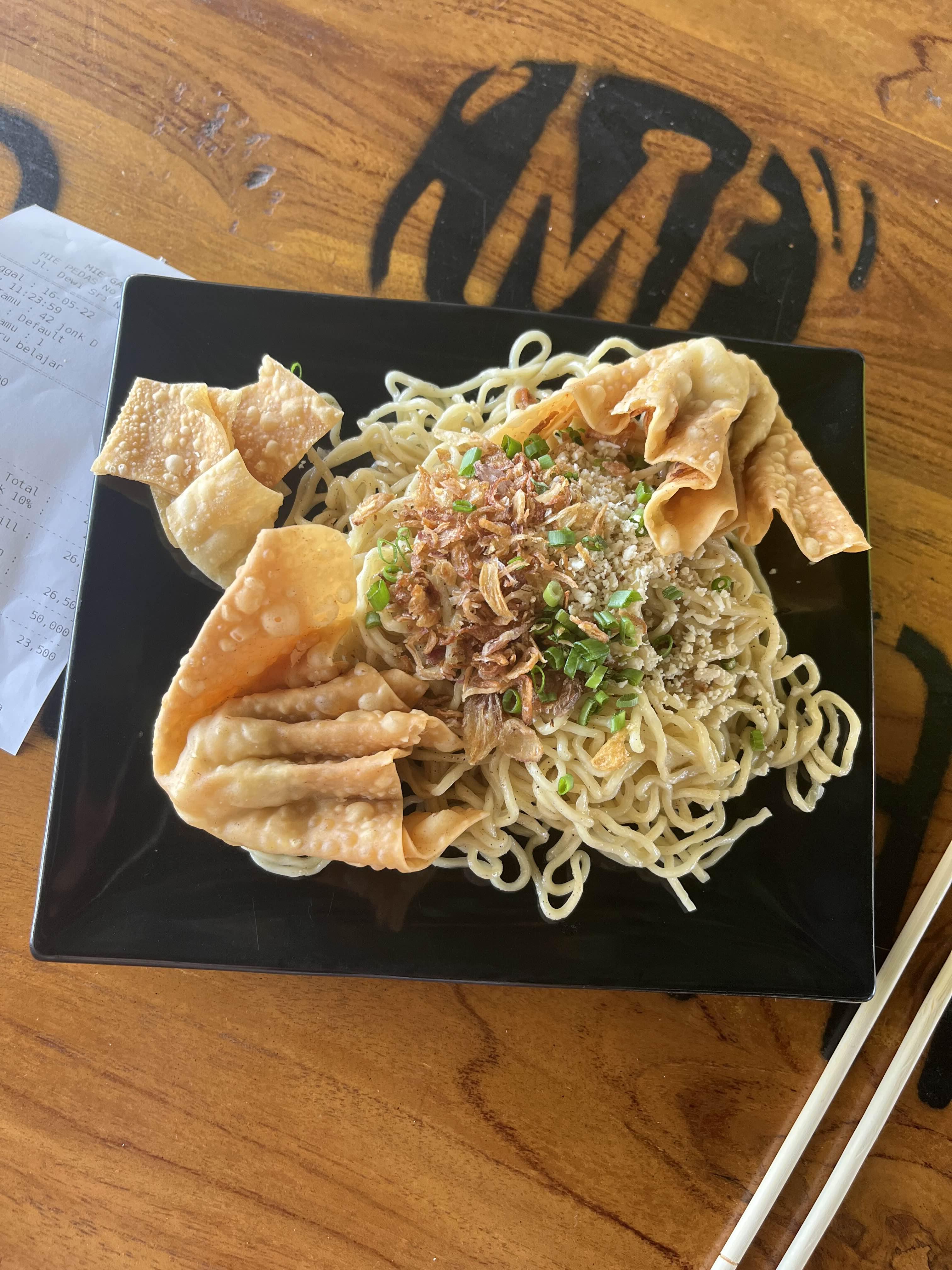 음.. 이건 Mie Angel이라 하는 거였는데 한국인 입장(?)에서 국물 없는 면을 먹기가 쉽지는 않았다. 다만 인도네시아 음식들은 간이 센 편이어서 그럭저럭 먹을만은 했다. 저기 좀 이상하게 생긴 튀김은 도톰한 부분에 야채 만두 같은 것이 들어있다.