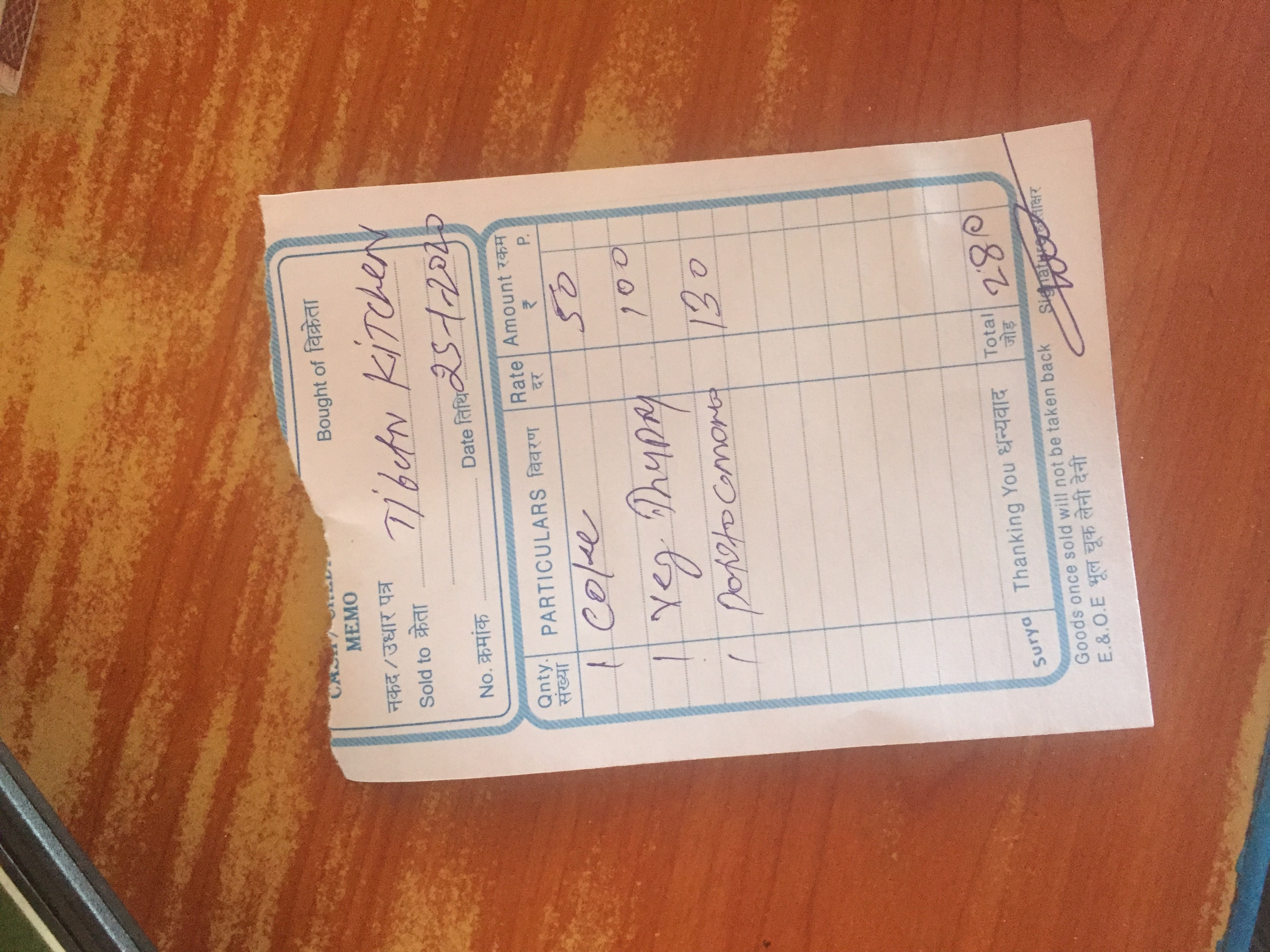 다 먹고나니 가격은 280루피 나왔습니다.