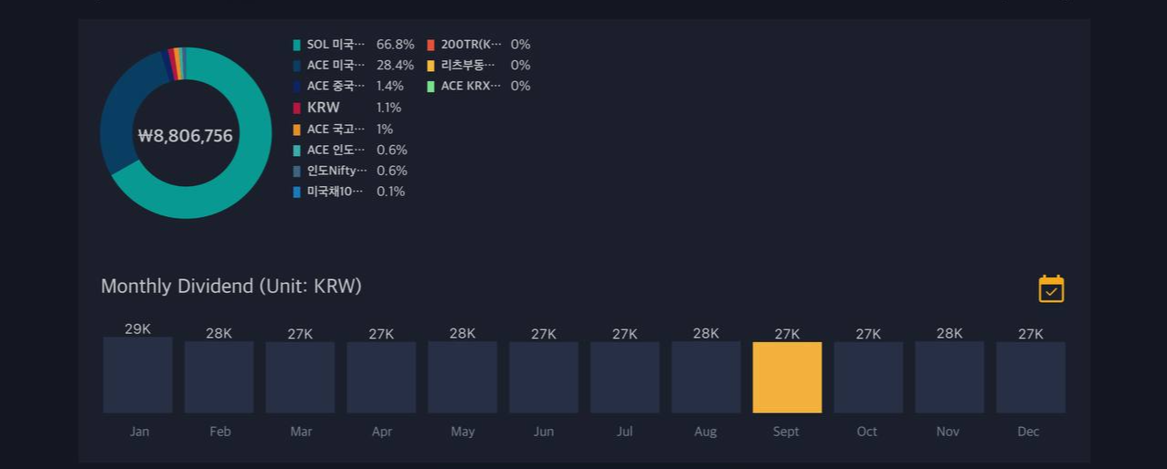 지난 글에서 연금 저축을 시작한다고 이야기한 지도 벌써 한 달이 지났다. 현재까지 연금 계좌 총 납입 한도 1,800만원 중 대략 1천 만원을 납부했고, 오늘 SOL/ACE 배당다우존스에서 첫 월 배당금을 받았다. 배당금은 대략 💸 3만원 정도였는데, 연금 수령 이전까지는 모두 재투자할 예정이다.