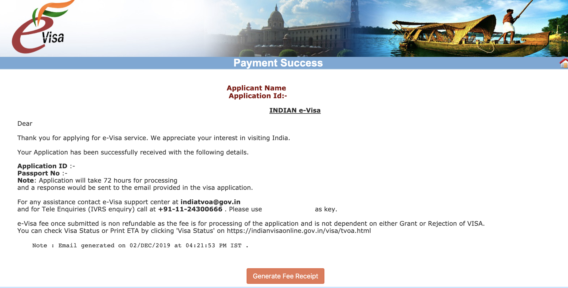 다 됐습니다! 이제 2~3일 후 이메일로 비자 신청 결과를 받게 되실 거에요. 성공적으로 전자 비자가 발급된 경우 프린트 해 인도에 가시면 됩니다! 참고로 1년 관광 전자 비자의 경우 도착일이 아닌 발급일로부터 1년간 유효합니다.
