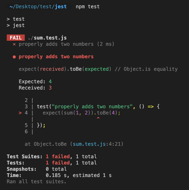 expect(sum(1, 2)).toBe(3);