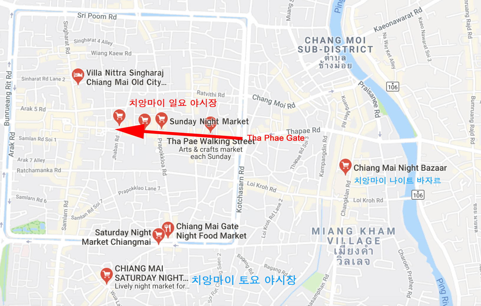 치앙마이 선데이 마켓 위치