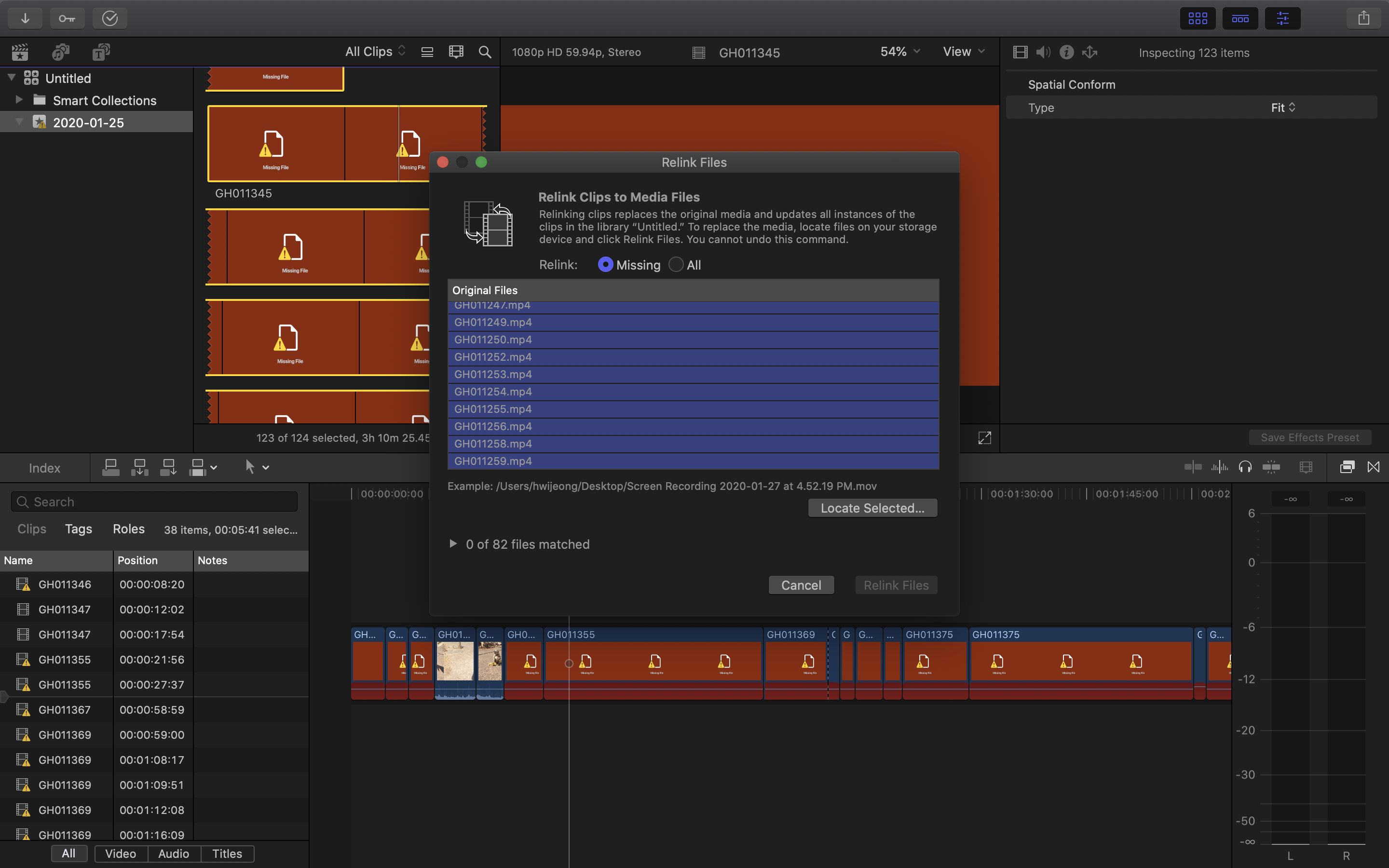 [파이널컷] 미싱 파일 재연결 하기 / 느낌표 오류 해결