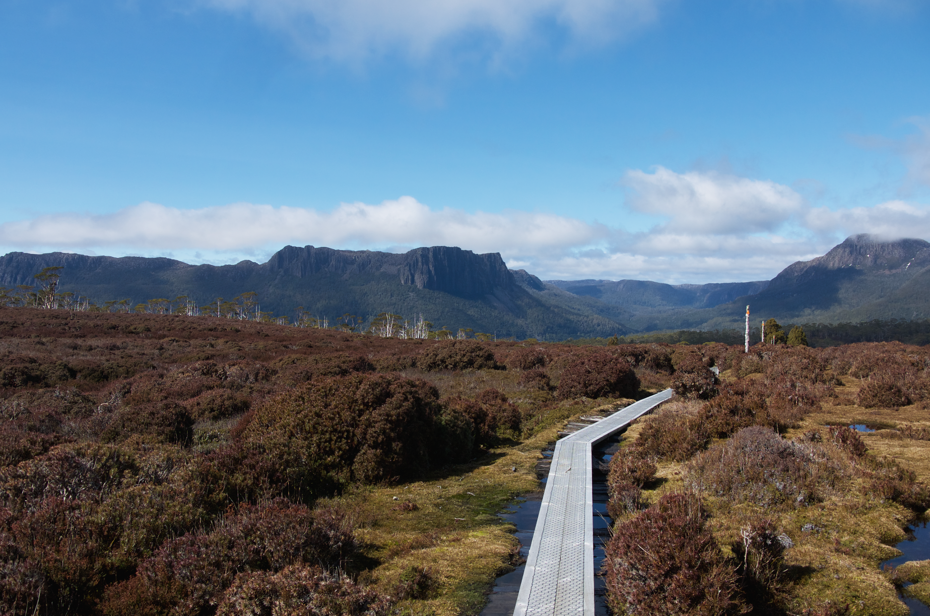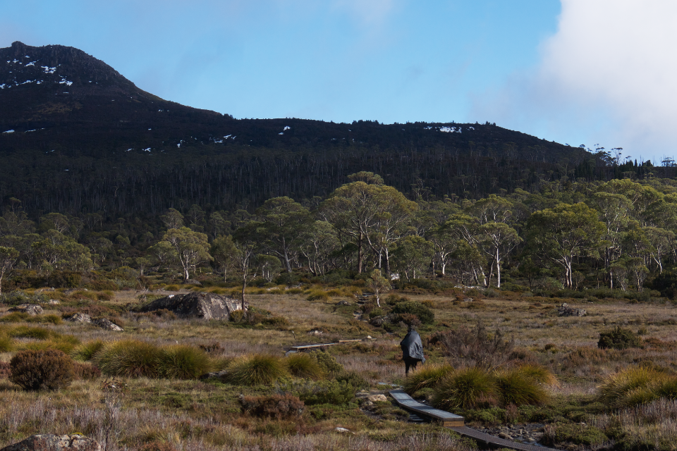 크래들 마운틴(Cradle Mountain)으로 가기 위한 갈림길에 도착한 건 10시쯤이었다. 날은 추웠지만 맑았다. 해가 떠올라 지면을 데우자 얼었던 빗물이 졸졸거리며 흐르기 시작했다. 풀숲에 맺혔던 서리가 물방울이 되어 땅으로 스며들기 시작했다.