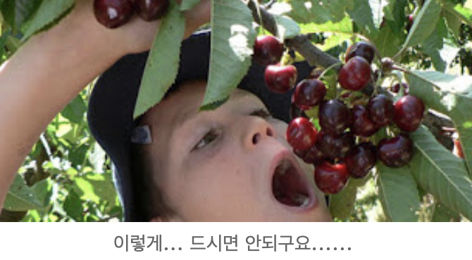 체리는 손가락을 이용해서 따야 한다. 줄기의 가장 윗 부분을 엄지와 검지로 잡고 줄기가 자라고 있는 방향으로 살짝 밀어 젖히면 체리가 똑 하고 아름답게 피킹이 된다. 여기서 줄기가 자라고 있는 방향으로 미는 게 핵심이다. 간혹, 옆으로 흔드는 이들도 있는데 그러면 줄기가 끊어지기도 하고, 나뭇가지가 끊어지기도 한다. 엄지와 검지를 이용해 체리를 똑 하고 따내면 된다. 이걸 빠르게 무한 반복하면 된다.