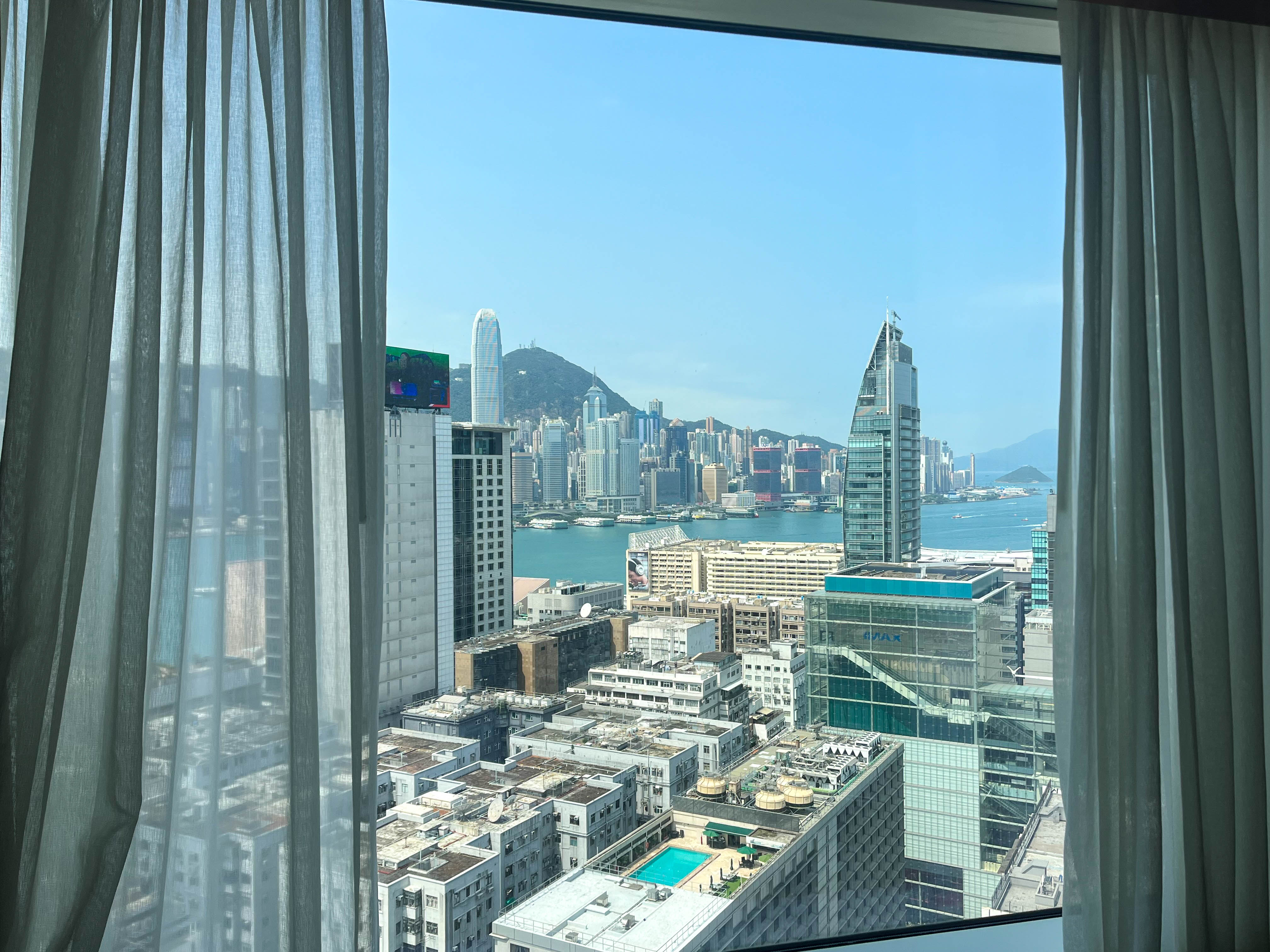 맑은 날에 블라인드를 걷고 보면 조금 더 좋더군요. 반대편은 홍콩의 센트럴 지역으로 제이피모건, HSBC 등을 비롯한 많은 금융 기업들이 포진해 있는 곳이에요.