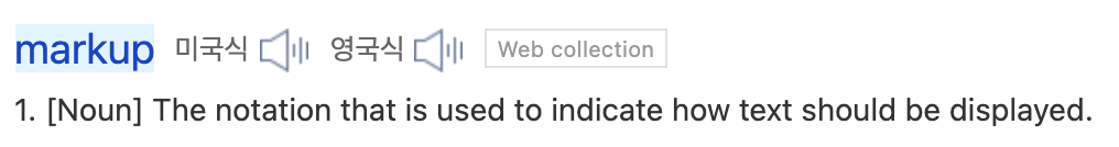 다음으로 마크업(Markup)입니다. 마크업은 텍스트(콘텐츠)가 표시되는 방법을 의미합니다.