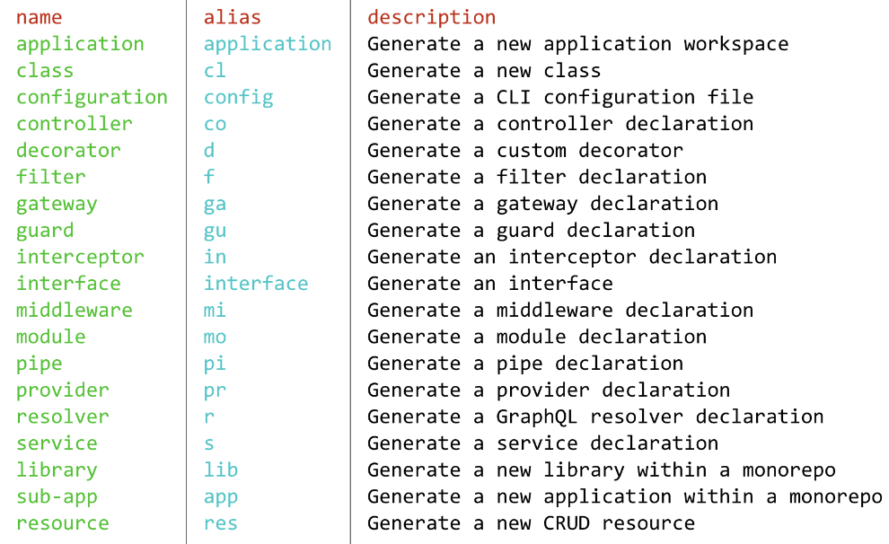 이 외에도 다음과 같은 명령어를 통해 Nest 모듈, 서비스, 파이프 등을 설치할 수 있습니다.