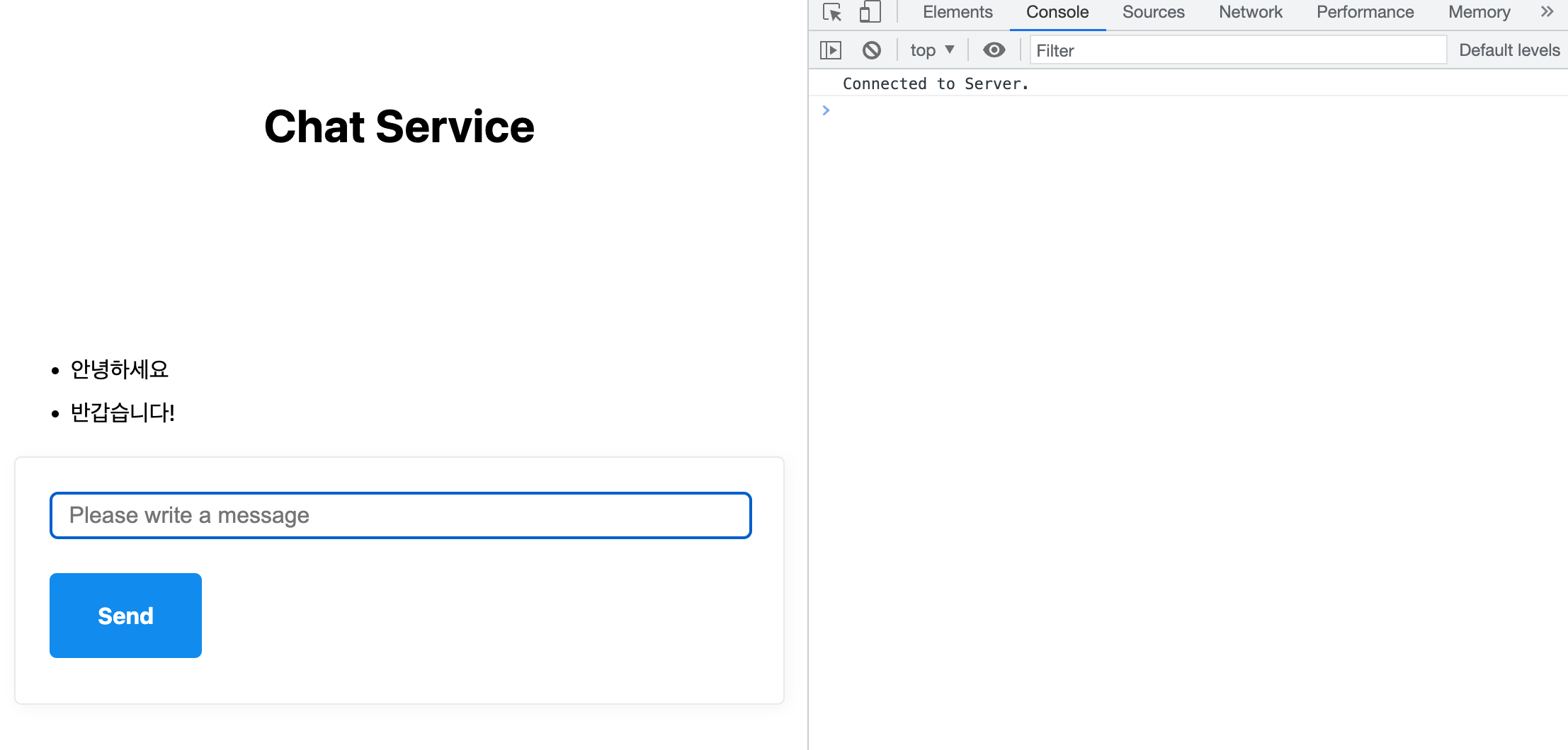 콘솔 창을 열어보면 브라우저와 서버 모두에 웹소켓 연결 및 연결 해제에 관련한 로그가 찍히는 것을 확인할 수 있습니다.