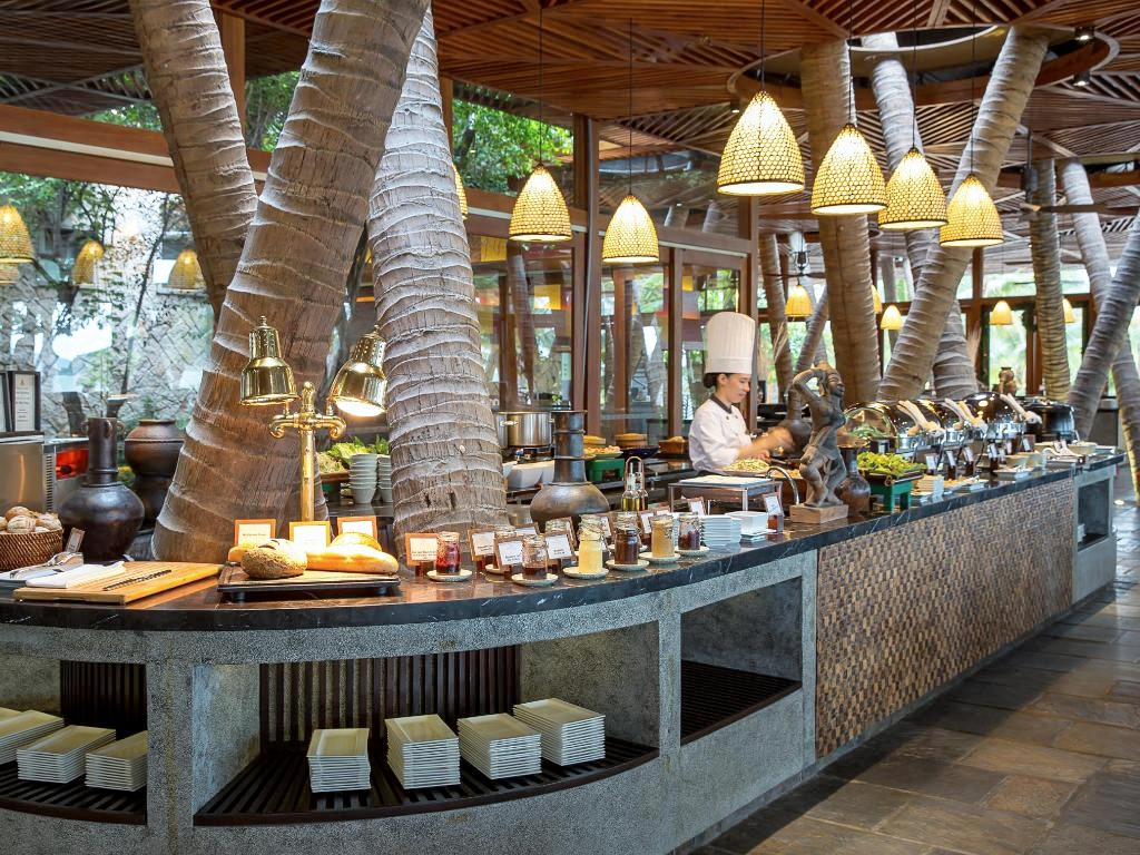리조트 내 메인 레스토랑 바카로(Bacaro)는 바다와 석양을 보며 식사할 수 있는 곳입니다. 조식은 뷔페로 제공되는데요. 메뉴는 엄청 많지는 않지만, 신선한 현지식 재료를 사용해서 맛있는 편입니다.