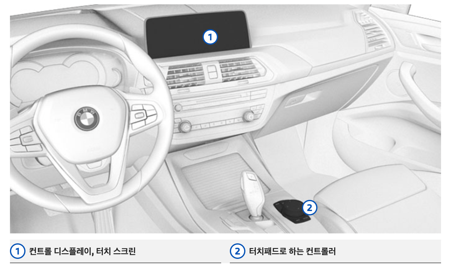 BMW iDrive는 차량 내 인포테인먼트, 내비게이션, 통신, 차량 설정 등 모든 디지털 기능을 하나의 인터페이스로 통합 조작할 수 있는 시스템입니다.